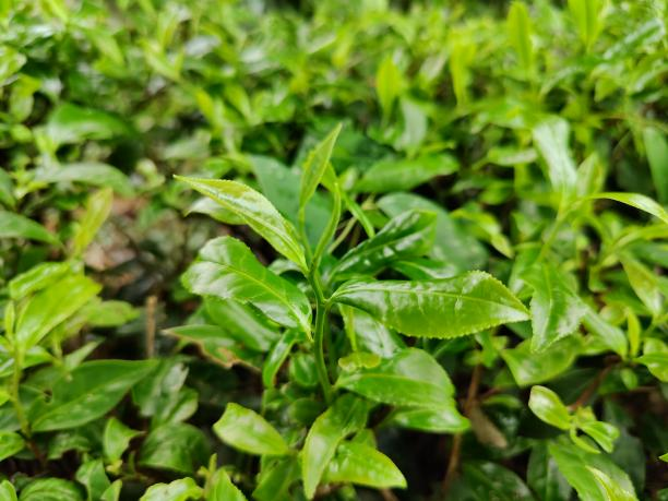无性系。小乔木型,中叶类,早生种。植株适中,树姿开张,分枝中等,叶片水平或稍上斜状着生。叶椭圆或长椭圆形,叶色绿或黄绿,富光泽,叶面平或隆起,叶缘平,叶身平,叶尖钝尖,叶齿锐浅,叶质柔软。芽叶黄绿色,茸毛多。